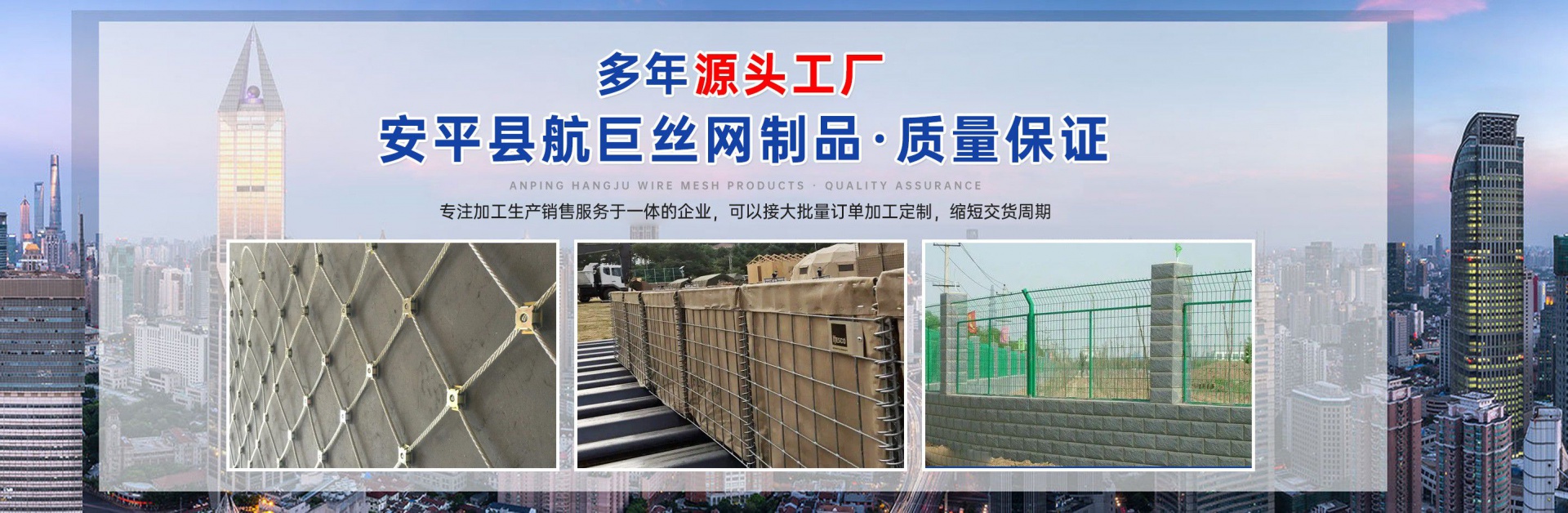 格賓石籠網(wǎng),雷諾護墊,麥克排水墊,加筋麥克墊,市政護欄,防爆籠,主動防護網(wǎng),被動防護網(wǎng),電焊網(wǎng)片,鋼格柵板-安平縣航巨絲網(wǎng)制品有限公司 公司簡介/ ABOUT